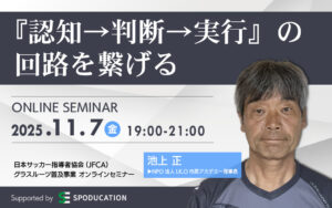 本セミナーでは、これまでの指導現場での気づきや具体的エピソードを交え、育成年代