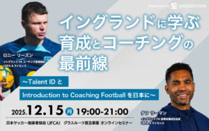 12月19日(金)は菊原志郎さんをお迎えし、『育成年代の指導 ~育ちやすい環境を考える~』をテーマにセミナーをおこないます。