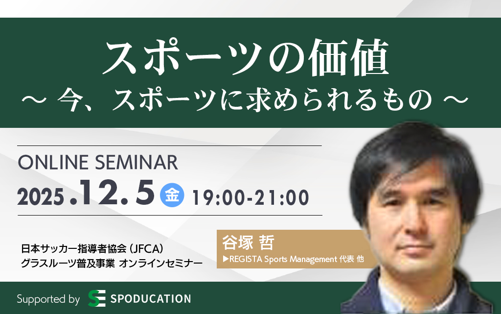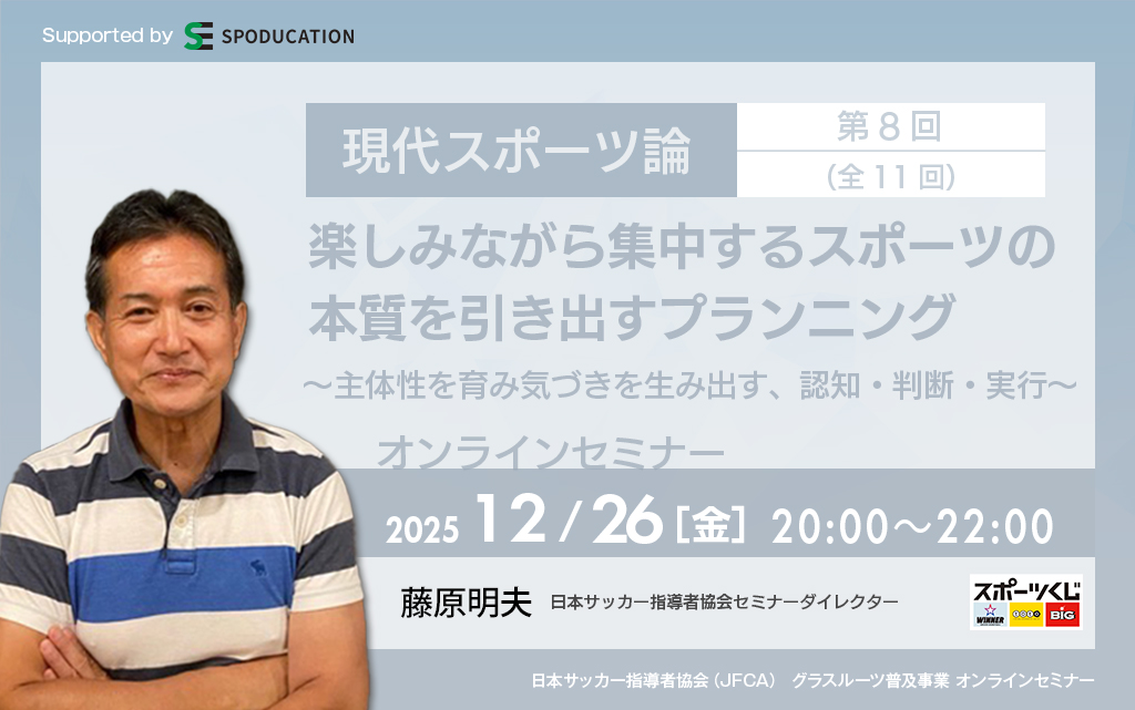 ★12/26★日本指導者協会(JFCA)グラスルーツ普及事業オンラインセミナー現代スポーツ論 第8回 / 全11回楽しみながら集中するスポーツの本質を引き出すプランニング~主体性を育み気づきを生み出す、認知・判断・実行~